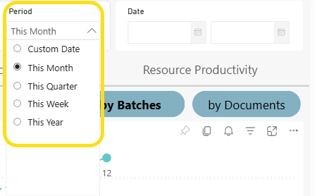 When By batches is selected, the Y axis indicates the batch name; whereas the X axis indicates the total number of documents processed for that batch during the selected period.