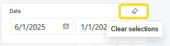 After selecting a Custom Date, to revert back to a standard time period from the Period list (i.e. This Month, This Year, etc.), you can hover over the data box and select Clear selections when it pops up.