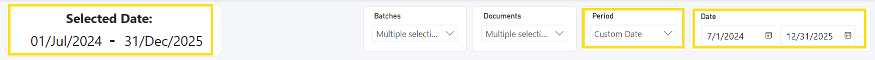 The charts are comprised of three criteria: time period, batches and document data.