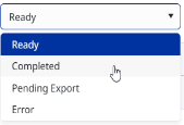 The status list, located beside the Work Queue list, allows you to further filter the Work Queue based on if the batch is in Ready, Completed, Pending Export, or Error Status.