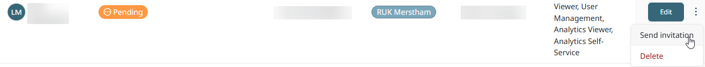 Ellipses button located beside the Edit button and select 'Send Invitation' to re-send the email invitation.