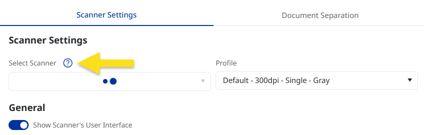On the Choose System step, look for the Select Scanner option, and click the question icon to open the Scanner Setup screen.